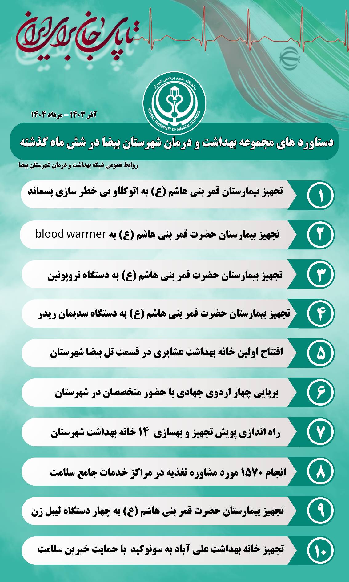 گزیده ای از دستاوردهای مجموعه بهداشت و درمان شهرستان بیضا در شش ماه گذشته(بخش اول)